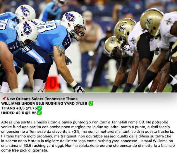 Un appunto anche sui Titans, partita letta alla perfezione nelle nostre analisi su Telegram con il +3.5 di Tennesse che gioca una sfida punto a punto e a basso punteggio, ma qui a pesare sono le prestazioni di Ryan Tannehill, tanto che in Tennessee ci si domanda sempre più frequentemente se sia il caso di cambiare.