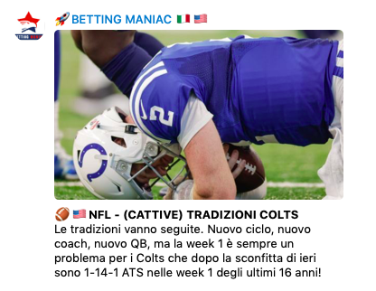 Vanno infine segnalate le pessime partenze di Bengals (3-24 a Cleveland) e Broncos (16-17 in casa contro i Raiders), come la bella vittoria 36-34 dei Dolphins a LAC, con la squadra di Tua tra quelle più interessanti da seguire nonostante la mano di Vic Fangio non si sia ancora vista nel reparto da migliorare, la difesa. I Colts in un anno di ricostruzione confermano quanto mai il rendimento negativo nelle scommesse di week 1 degli ultimi 16 anni: 1-14-1 ATS! Chiudiamo infine col Sunday Night di NY, con i Giants che hanno fatto davvero una brutta figuraccia nello 0-40 contro i rivali di sempre, i Dallas Cowboys. Prova di forza di Prescott e compagni o demeriti di Daniel Jones e dei G-Men? Lo scopriremo già nelle prossime settimane.