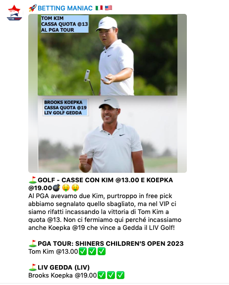 Per essere sempre aggiornato seguici anche sul canale TELEGRAM BETTING MANIAC gratuito. Se vuoi tutto entra nel VIP con una piccola spesa, o anche gratis con le nostre promozioni. Contattaci per tutte le informazioni. Siamo anche su YouTube con i nostri video e su Instagram e Twitter.