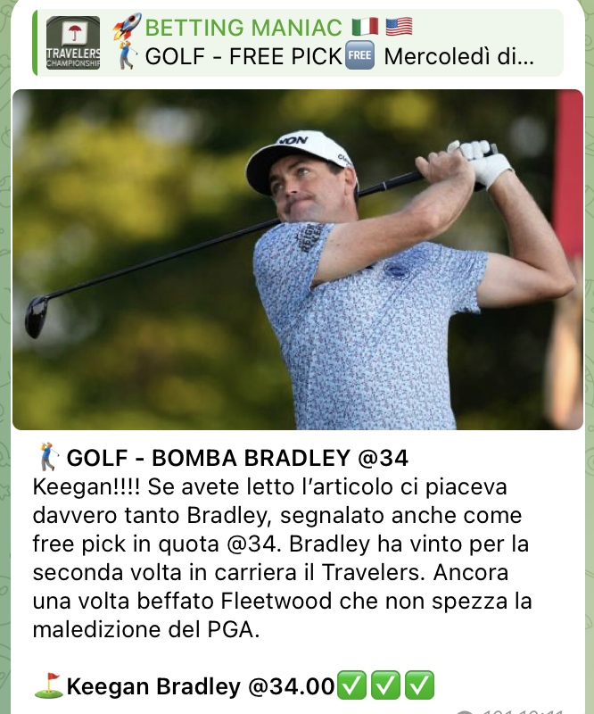 Questa settimana ci riproviamo, dopo la splendida cassa @34 di Keegan Bradley che ha vinto al The Travelers, superando Tommy Fleetwood che non riesce a sbloccarsi e a sfatare il tabù del PGA Tour che questa settimana si sposta a Detroit. La giocata della scorsa settimana ci ha visto andare tutti in cassa visto che si trattava di una free pick data per tutti, e non solo per il nostro canale VIP su Telegram dove comunque vi invitiamo sempre per non perdervi nessuno dei nostri contenuti e delle nostre giocate (trovate tutti i riferimenti in fondo a questo articolo). Bradley ha vinto così il suo 8° titolo PGA, il 2° negli ultimi 17 eventi giocati (e anche il suo 2° Travelers che aveva già vinto in passato).