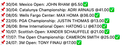 Per il PGA Tour ho scelto 6 possibili vincitori e tante altre special bet sui Testa a Testa e piazzamenti, come sempre in esclusiva nel canale Telegram VIP BETTING MANIAC. Vi segnalo qui in free pick qualche idea.