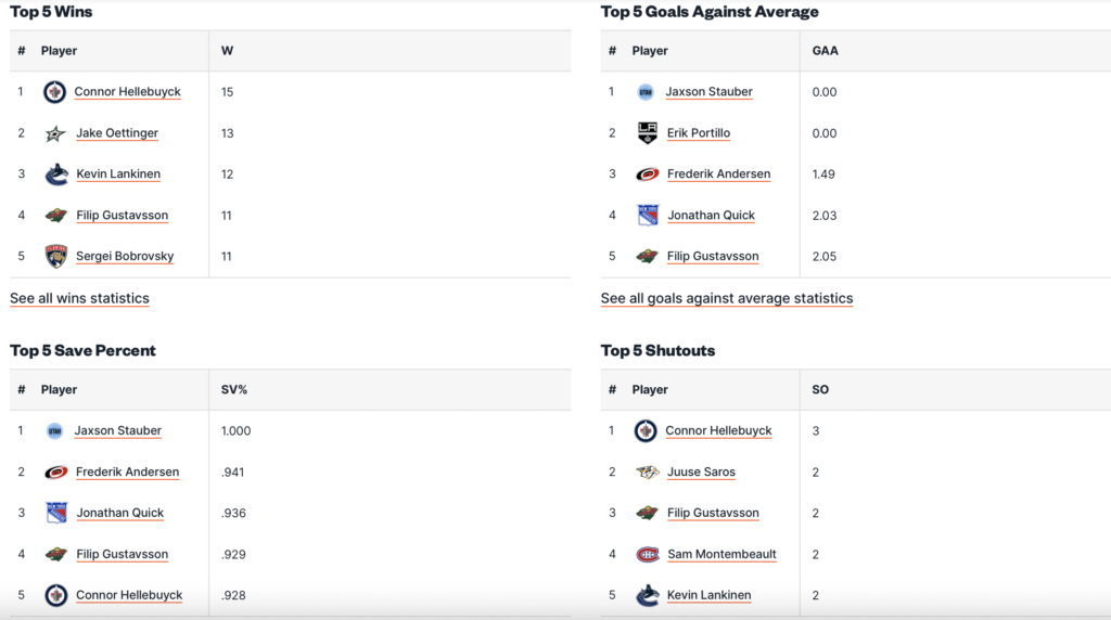 Passiamo a Ovest con la Central Division che ha una nuova capolista, i Minnesota Wild che hanno agganciato i Winnipeg Jets con 36 punti, ma una partita in meno. I Wild hanno un ottimo rendimento esterno (10-1-3), sono reduci da 3 vittorie su 3 la scorsa settimana, e hanno la 2° miglior difesa per gol concessi (2.3). I Jets, dopo un grande avvio, sono in calo con 3 sconfitte di fila e solo 5 gol segnati dall’attacco che rimane 2° in stagione con 3.9 gol segnati a sera, come la difesa è 3° (2.5). Più staccati Dallas Stars e Colorado Avalanche. Gli Stars rimangono comunque un ottima squadra (9° in attacco e 4° in difesa) e hanno vinto le ultime 2 partite. Anche gli Avalanche, al netto del pessimo rendimento difensivo (31°), possono giocarsela con la qualità del proprio attacco, anche se nel weekend hanno subito 2 brutte battute d’arresto a Dallas e in casa contro gli Oilers, con altri 9 gol incassati da Georgiev. I nuovi St.Louis Blues di Montgomery avevano iniziato con 2 vittorie convincenti a NYR e in New Jersey, ma poi sono rientrati perdendo 2-3 OT in casa contro i Flyers.