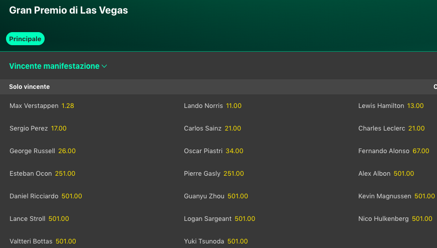 Quote antepost e prossimo GP: si torna il pista il 19 a Las Vegas