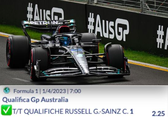 Anche questa settimana abbiamo chiuso in profitto con le giocate di Panda sulla Formula 1, entrambe concentrate sulle qualifiche del sabato. Purtroppo Piastri non vince il confronto interno in McLaren con Norris, per quella che era anche la nostra free pick, ma chiudiamo in profitto grazie alla giocata a doppio stake su Russell meglio classificato rispetto a Sainz, sempre da sfavorito con quota oltre la pari.
