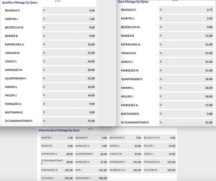 Quote Gran Premio del Qatar 2023
