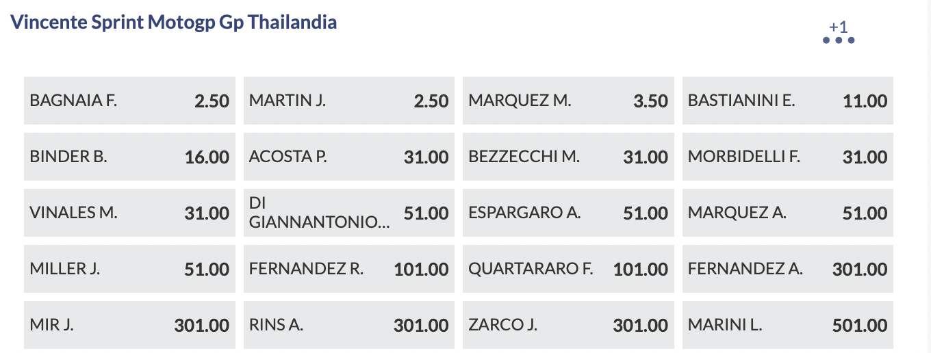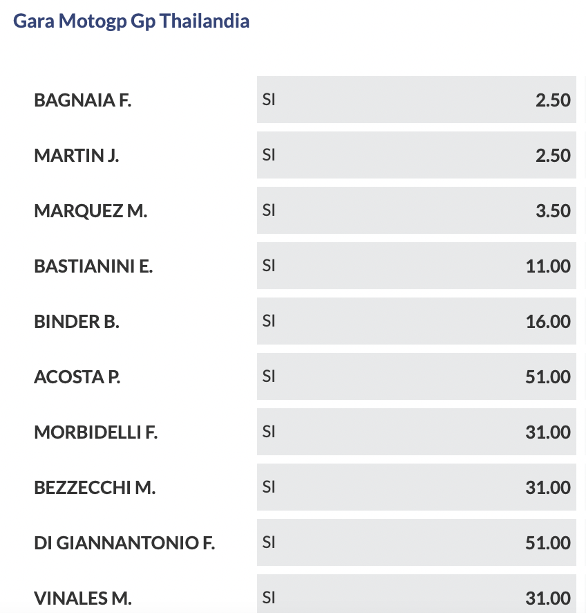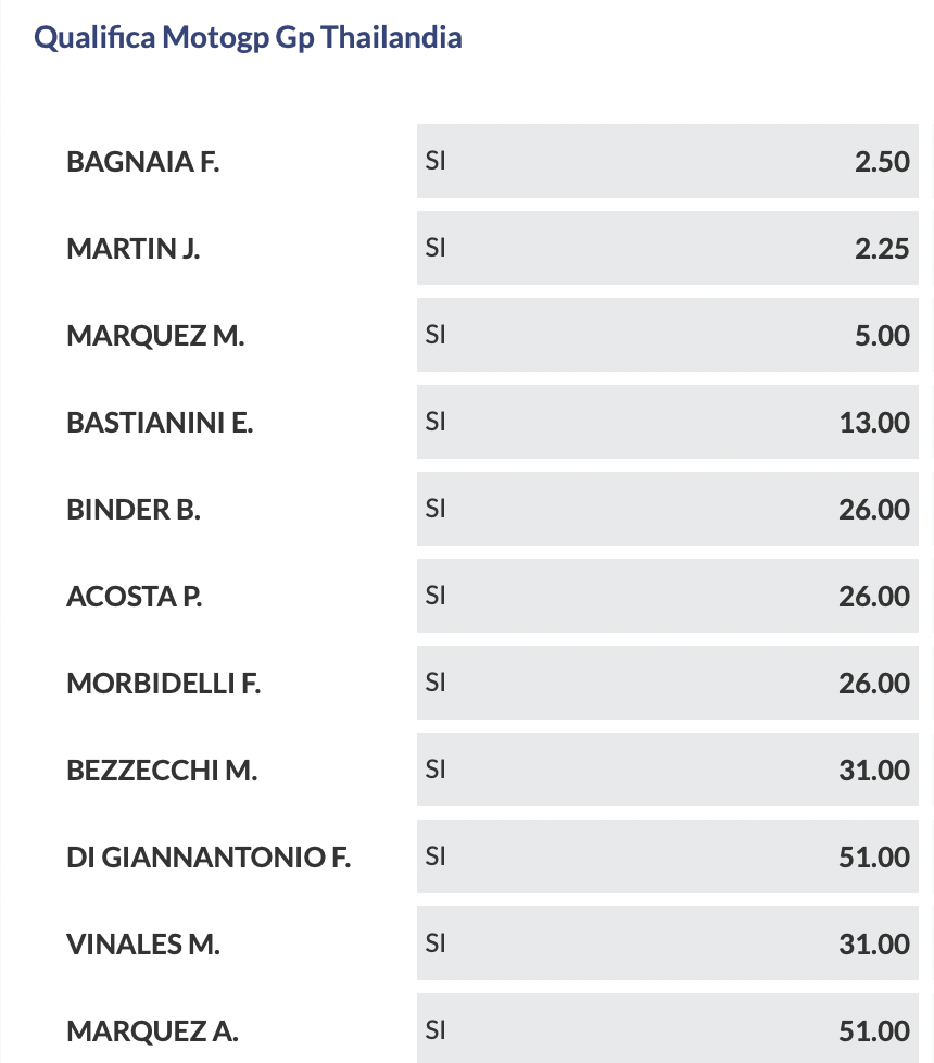 Quote GP Thailandia 2024, MotoGP