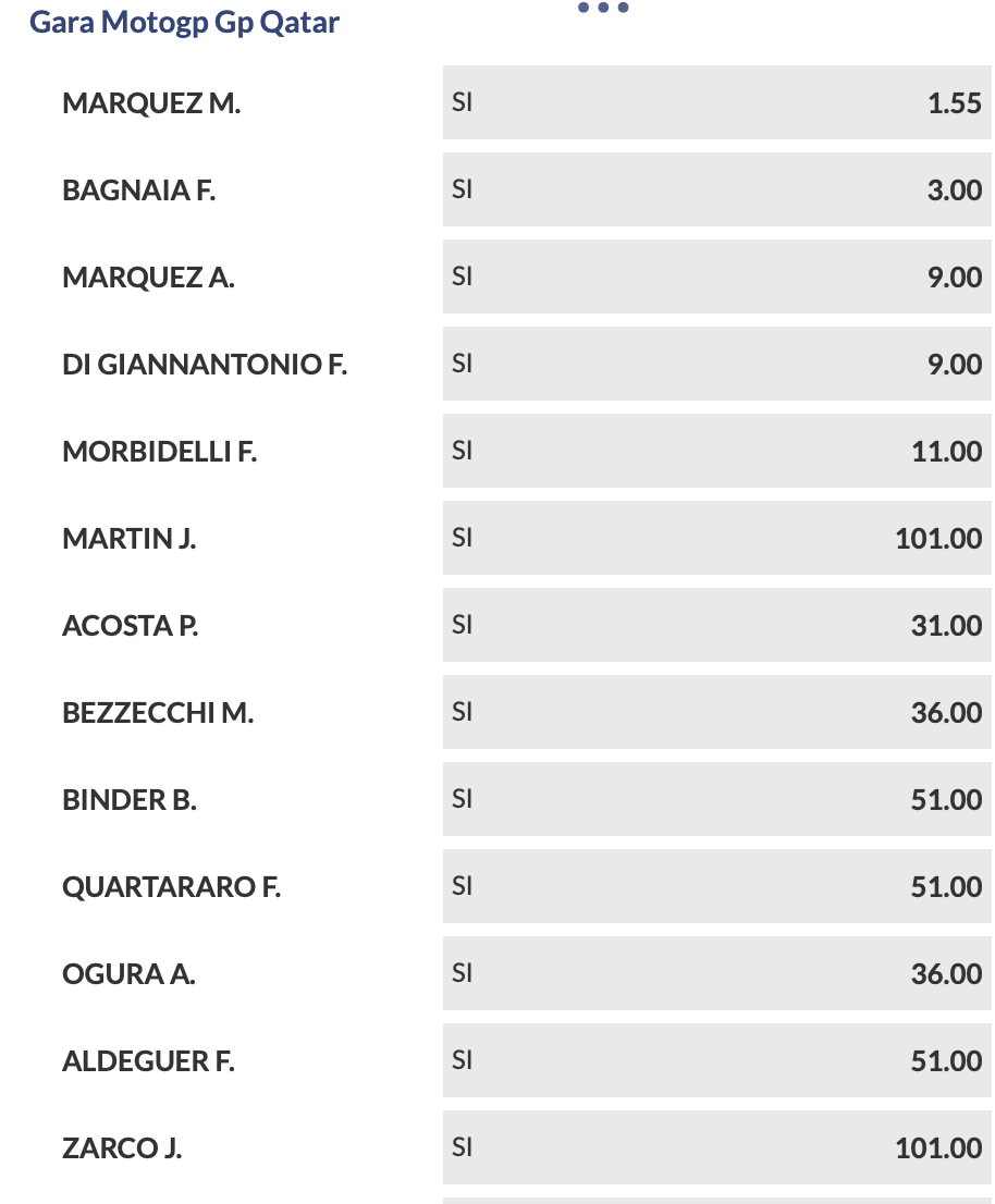 Quote MotoGP Gran Premio del Qatar 2025