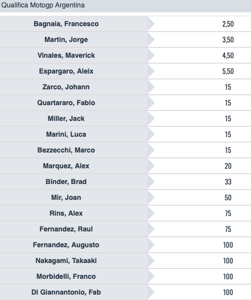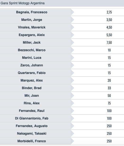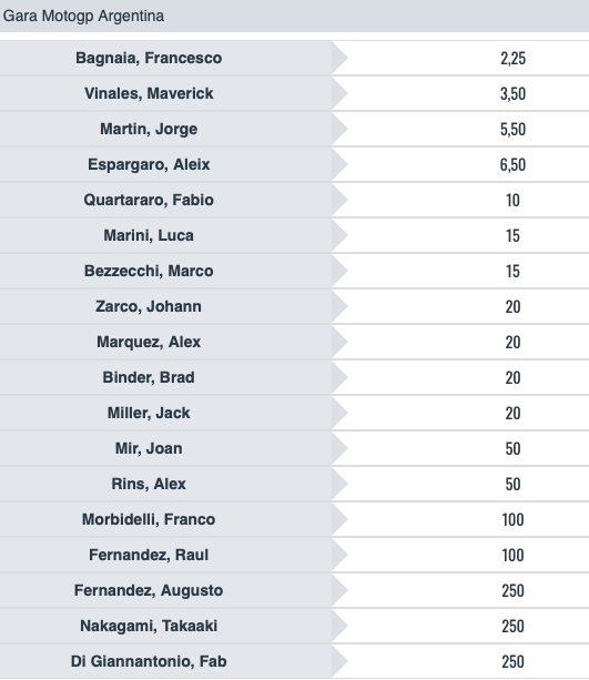 Tutte le quote sul GP Argentina