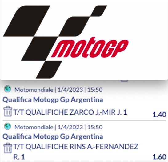 Per questo weekend ci concentriamo sulle qualifiche del sabato, andando a giocare una DOPPIA @2.24 sui testa a testa. Prendiamo Zarco meglio di Mir e anche Rins meglio classificato rispetto a Fernandez.