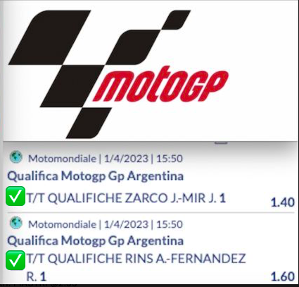 Diciamo che con le scommesse di Panda abbiamo chiuso in profitto anche questo secondo GP del motomondiale, con la giocata principale (stake 3) che è stata data anche in free pick nell’articolo, e nel nostro canale Telegram pubblico e gratuito, si tratta di una doppia sui testa a testa in qualifica per una bella quota @2.24 che vale un raddoppio abbondante.