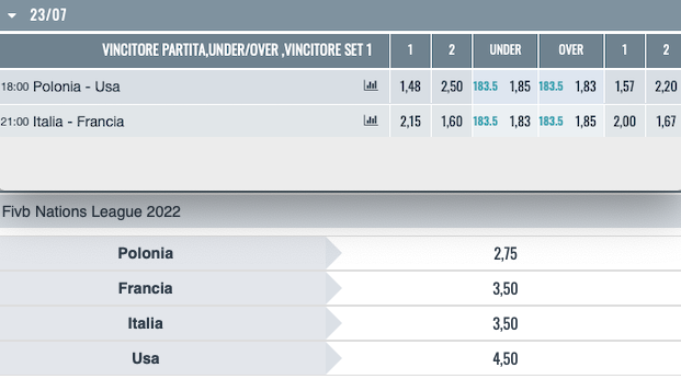 Semifinali Volley Nations League maschile 2022, gli azzurri hanno iniziato le Final Eight battendo l’Olanda con più fatica del previsto, e ora sono sfavoriti nella semifinale Italia-Francia. Dall’altra parte Polonia-USA.