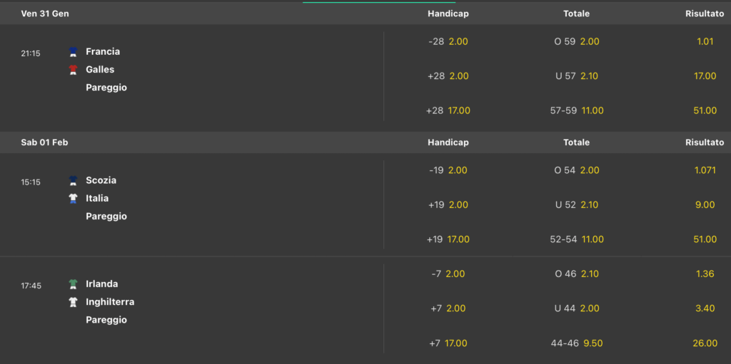 Quote Antepost Rugby Six Nations 2025 e primi match
