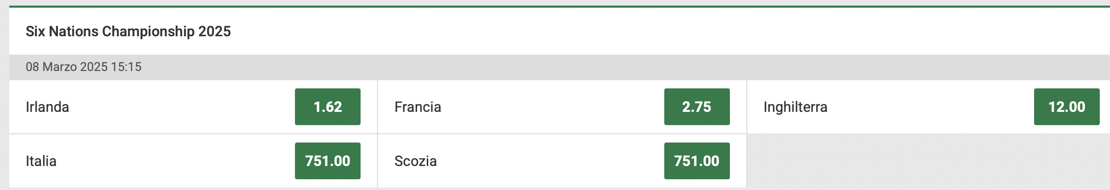 Quote Antepost: gli ultimi aggiornamenti sul Sei Nazioni