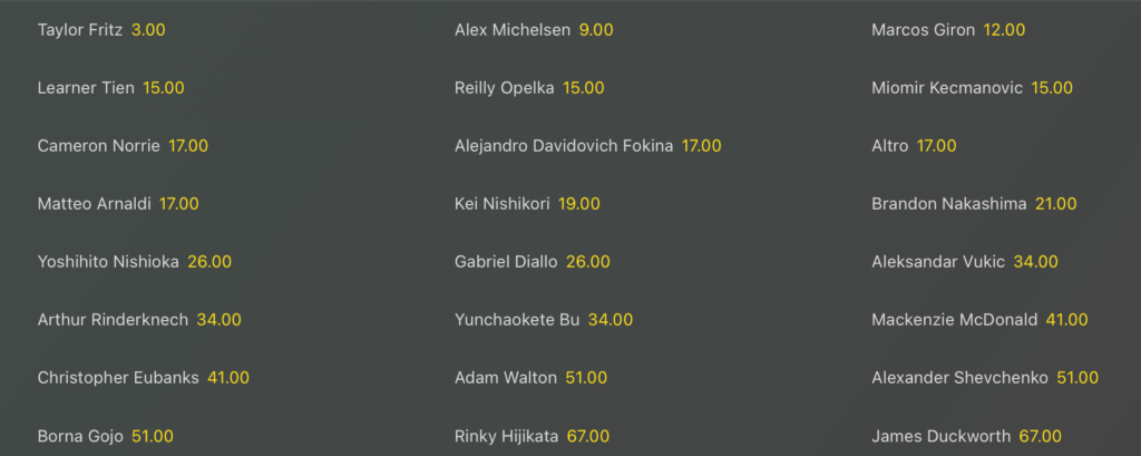 Sul cemento di Delray Beach abbiamo un solo italiano, Matteo Arnaldi, che si presenta come numero 4 del seeding anche se nelle quote è molto più indietro @17 volte la posta.