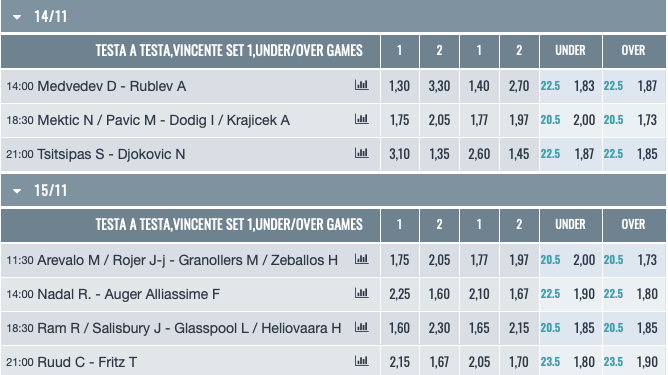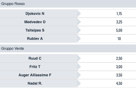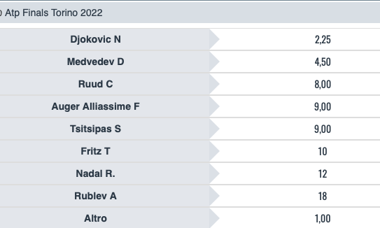 ATP Finals 2022. A Torino continuano le finali tra i migliori tennisti al mondo. Secondo i bookmakers strada in salita per Rafa Nadal. Il favorito è sempre Novak Djokovic ma attenzione a Daniil Medvedev.