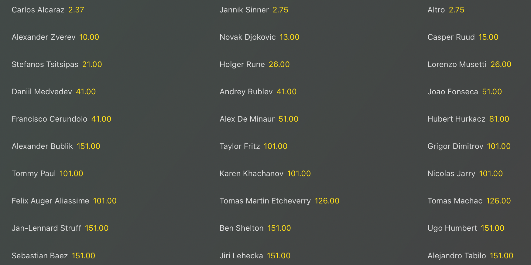 Quote Antepost: Carlos Alcaraz ancora favorito