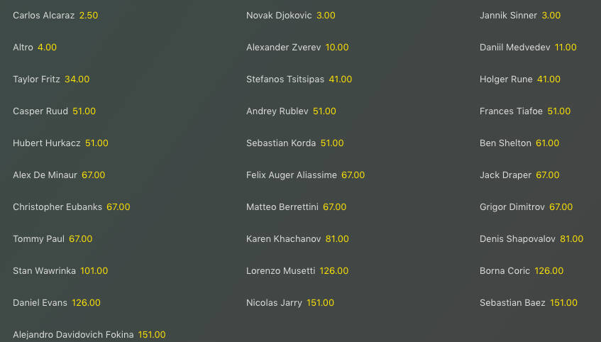 L’Italia si presenta con Jannik Sinner principale protagonista che speriamo possa portarci al successo in un torneo in cui tradizionalmente i giocatori del Bel Paese hanno sempre fatto fatica. Gli azzurri potranno contare anche su Lorenzo Musetti, Matteo Arnaldi e Flavio Cobolli come testa di serie. Particolare attenzione al caratino che è in un ottimo momento culminato col bronzo a Parigi (Semifinale a Stoccarda, Finale al Queen’s, Semifinale a Wimbledon, Finale a Umago, Bronzo nel torneo olimpico), una serie di risultati che lo hanno fatto salire al numero #18 al mondo. Non vanno dimenticati anche i riscontri di Luciano Darderi (22 anni e n.38) e quelli di un Matteo Berrettini (n.44) che sta provando a ritrovare la strada, dopo la splendida doppietta di luglio tra Gstaad e Kitzbuehel.
