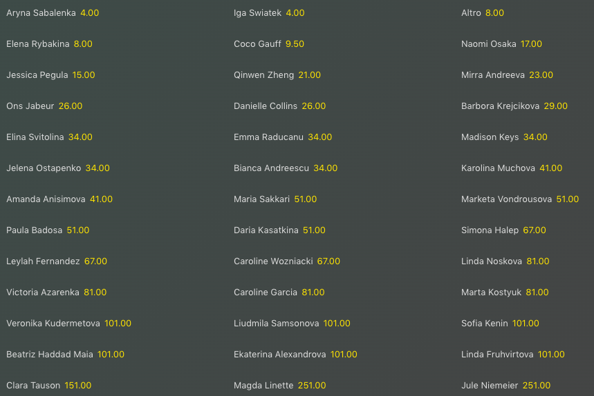 Ecco gli aggiornamenti delle lavagne sulle quote antepost per la vittoria finale dello US Open maschile e femminile.
